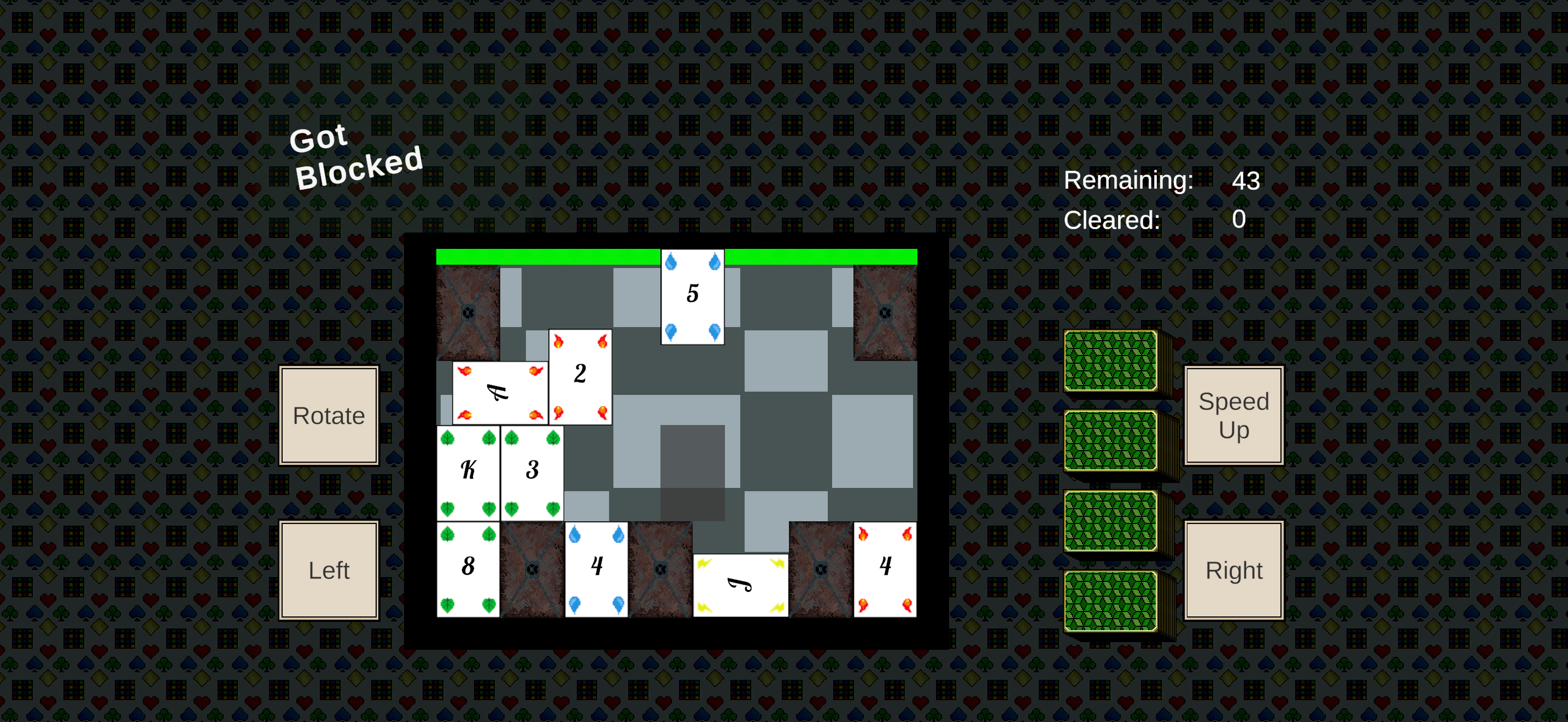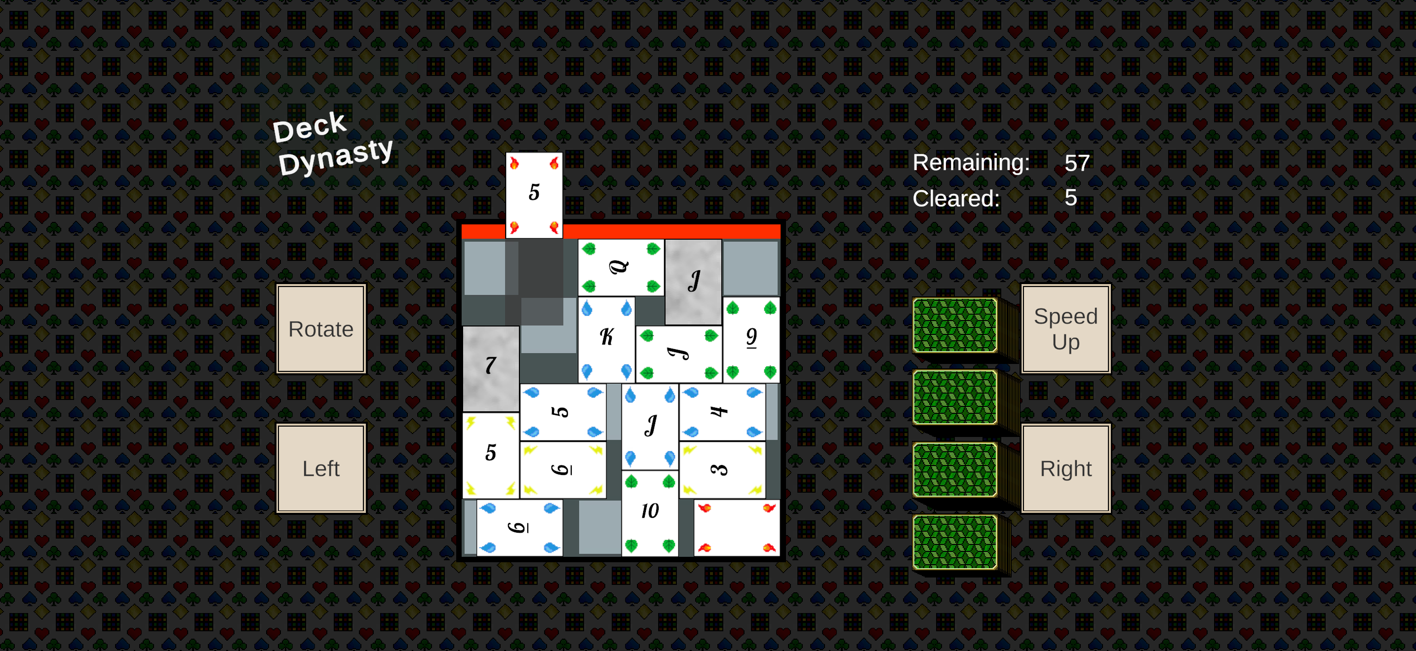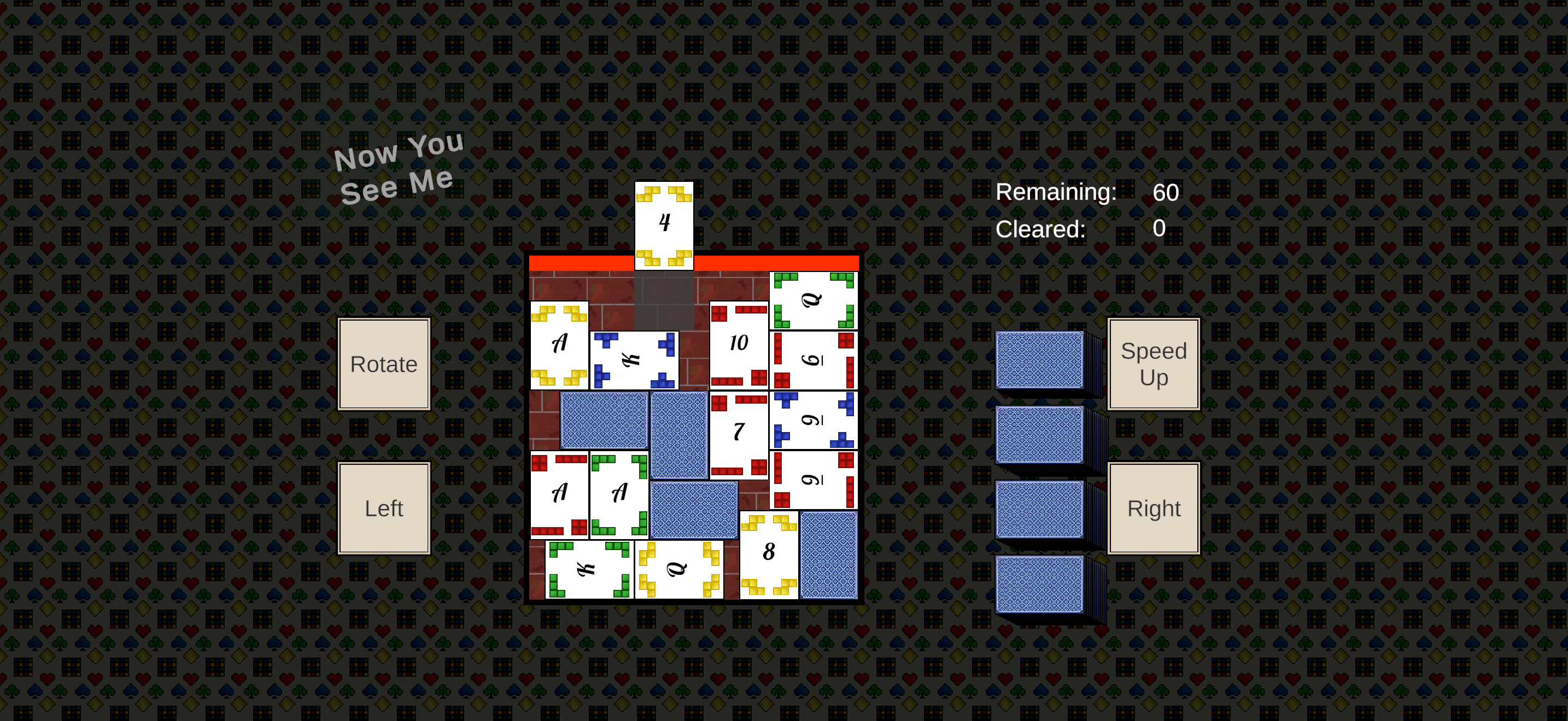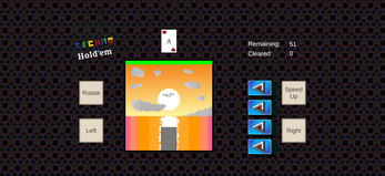 Tetris but with playing cards. Form poker hands to clear out cards before they pile up. Complete campaign challenges, enjoy the standard challenge, or create custom ways to play with freestyle options. Customize your playing cards with salacious skins and fabulous fonts. No AI art included.
